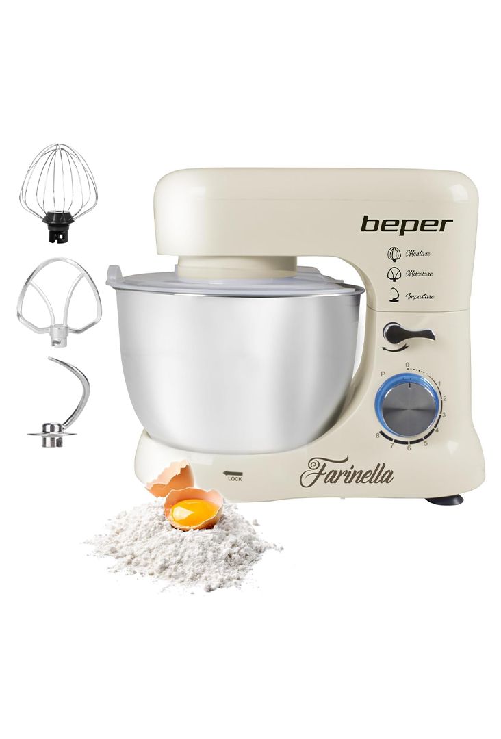 PROFESIONALAC U KUHINJI: Blender Beper Farinella je pomoć koju svi žele u kuhinji: tih i efikasan zahvaljujući posebnom planetarnom mehanizmu rotacije; viljuške se okreću oko svoje ose i istovremeno duž ruba posude kako bi gurale tijesto.