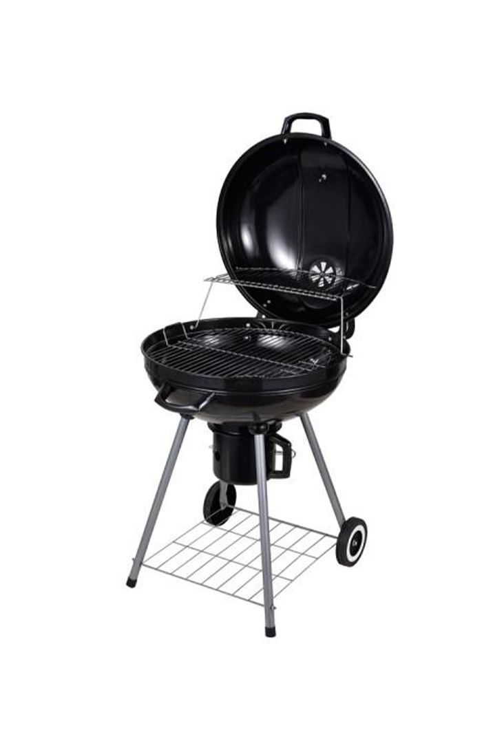 Roštilj sa čeličnim nogarima, tri ručice od bakelita i dva plastična točka. Emajlirani deo za pepeo, omogućava lako čišćenje. Donja rešetka stvara dodatni prostor na roštilju.