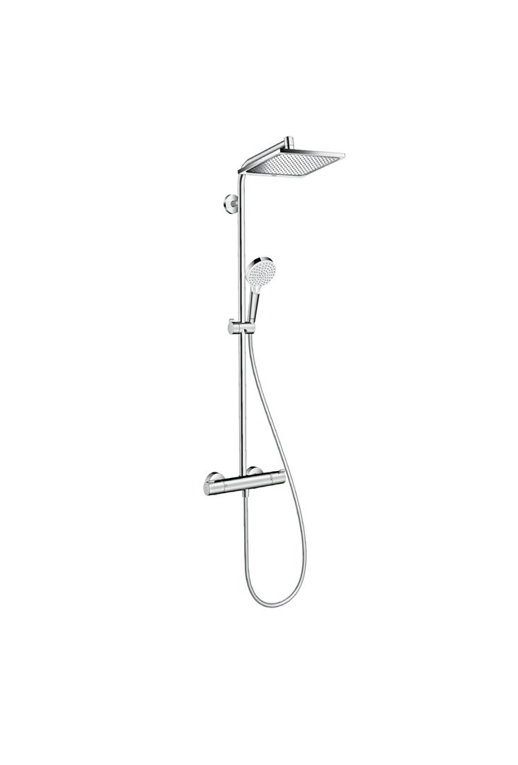 Uživajte u ultimativnom luksuzu tuširanja s Hansgrohe Crometta E Showerpipe 240 1jet s termostatskom miješalicom za tuš u kromu. Ovaj jedinstveni tuš sustav, opremljen širokim spektrom impresivnih značajki, obećava pretvoriti vaše svakodnevno tuširanje u osvježavajuće spa iskustvo. Štedeći vodu i energiju bez kompromisa u performansama ili stilu, ovaj tuš sistem je nesumnjivo vrijedna i sofisticirana nadogradnja svake kupaonice. Ne čekajte da unaprijedite svoju dnevnu rutinu, iskusite stilsku, ekološki prihvatljivu i vrhunsku tehnologiju tuširanja već danas.