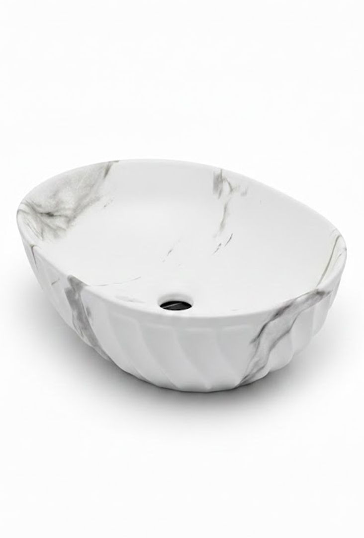 Dizajn mermera: Sive šare na bijeloj podlozi vizuelno sakrivaju tragove kapi vode i kamenca bolje nego čisto bijeli, sjajni modeli.